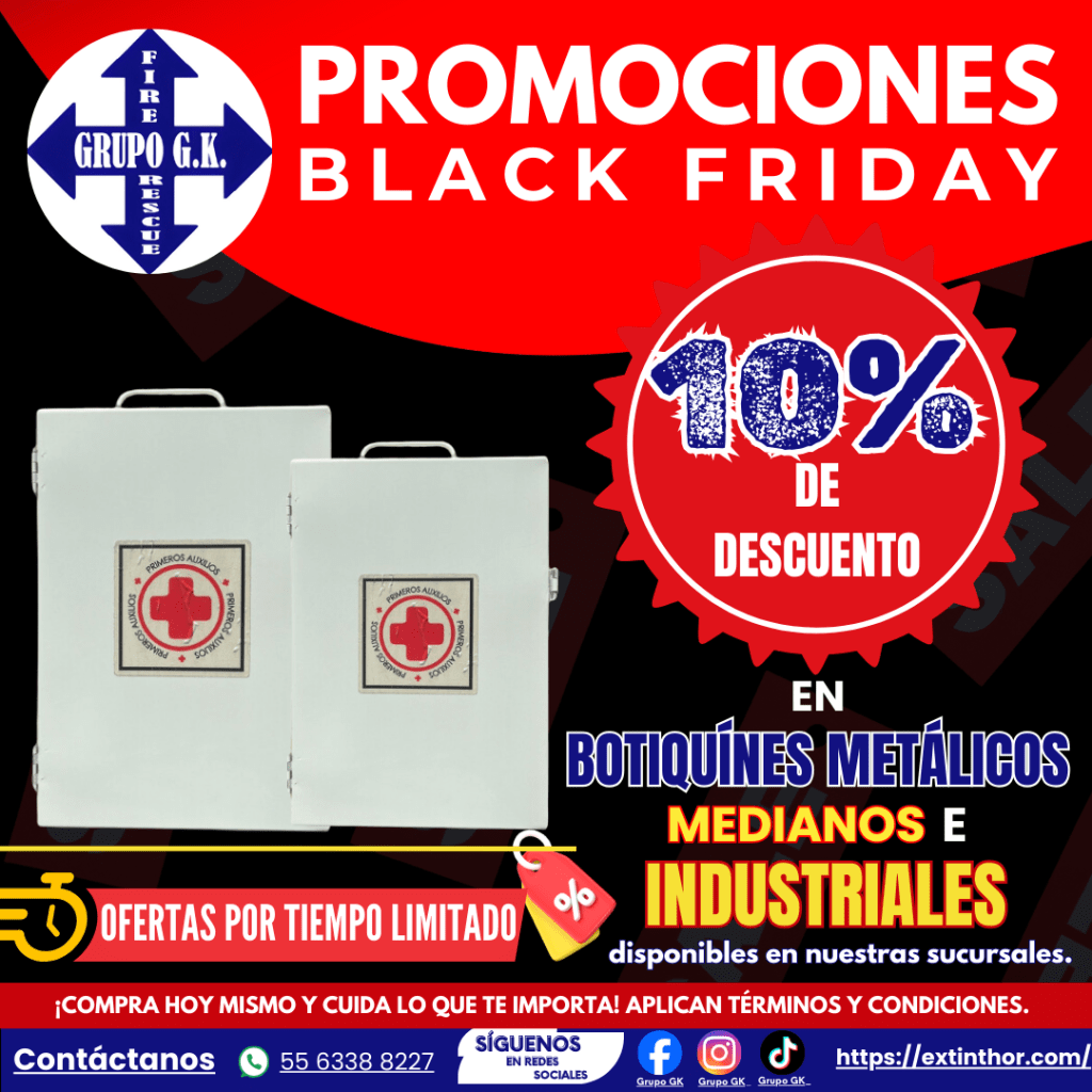 Aplica para la compra de hasta un máximo de 5 botiquines medianos o industriales por cliente o razón social. El descuento se aplica sobre el total de la compra y es válido una sola vez por cliente.