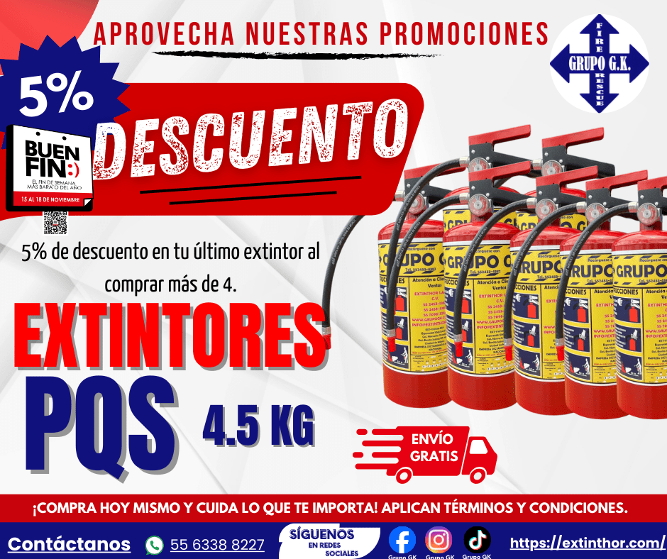 PROMOCION 2: 5% de descuento en la compra de 4 o más extintores de 4.5 kg de PQS y envío gratuito en CDMX.